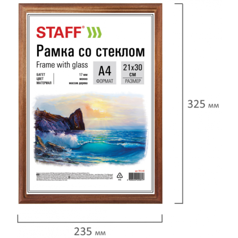 Рамка 21*30 см, дерево со стеклом, багет 17мм,  мокко