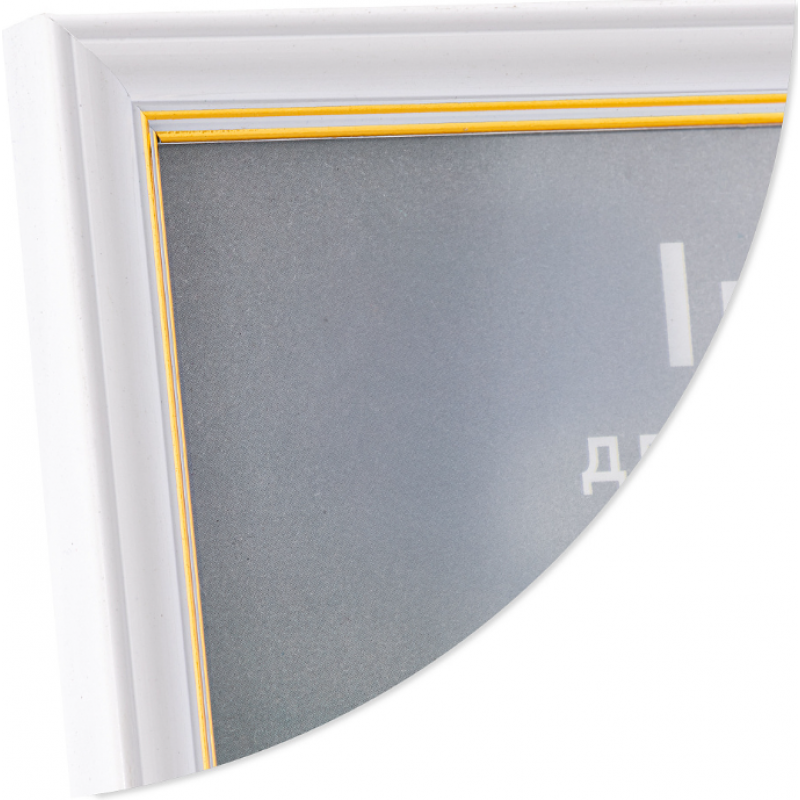 Белая рамка 21x30 (A4) из фигурного багета шириной 15 мм с золотыми окантовками по внутреннему периметру