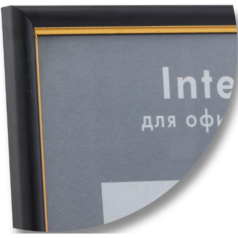 Черная рамка 30x40 из классического округлого багета шириной 14 мм с золотой окантовкой по внутреннему периметру.