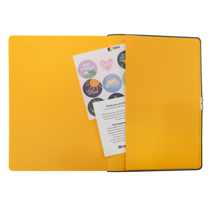 Обновлённый внутренний блок содержит различные разделы как для организации рабочего времени, так и для систематизации личных планов, а также мотивирующие цитаты на каждый день. Раздел с постановкой годовых целей с разбивкой на этапы поможет сохранять фокус на самом важном. В ежедневнике выделен отдельный блок для заметок на отрывных листах. Дополнительный внутренний конверт поможет хранить необходимые заметки. 2 закладки-ляссе сделают использование ежедневника Berlingo комфортным. Комплект красочных наклеек внутри ежедневника станет приятным подарком. Упакован в индивидуальный брендированный пакет с клеевым клапаном.